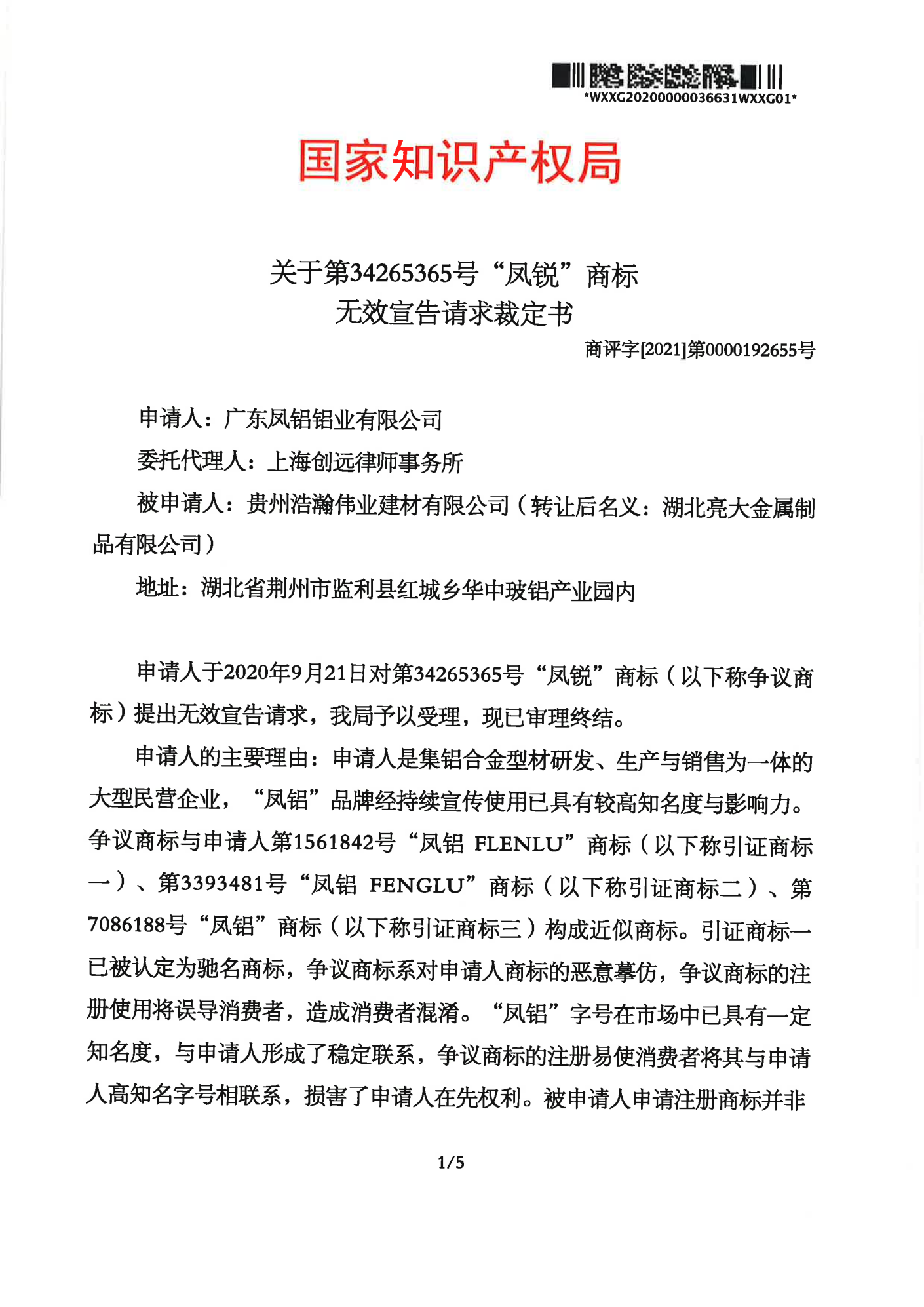 鹤壁辉知队 | 国家知识产权局:“凤锐”商标无效